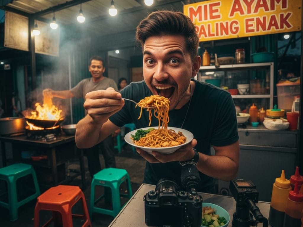 Antusiasme Food Vlogger saat mengulas kuliner lokal yang autentik (foto: pribadi)